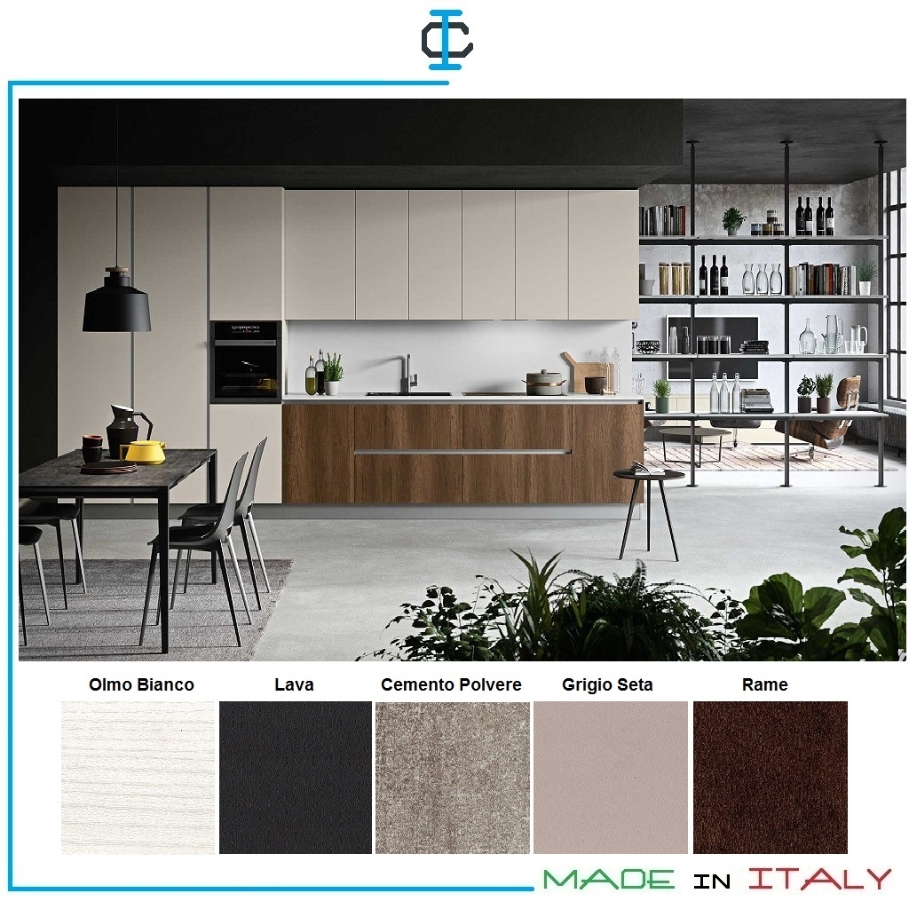 Cucine con gola con la possibilità di scegliere : materiali costruttivi , finiture, tinte, elettrodomestici.