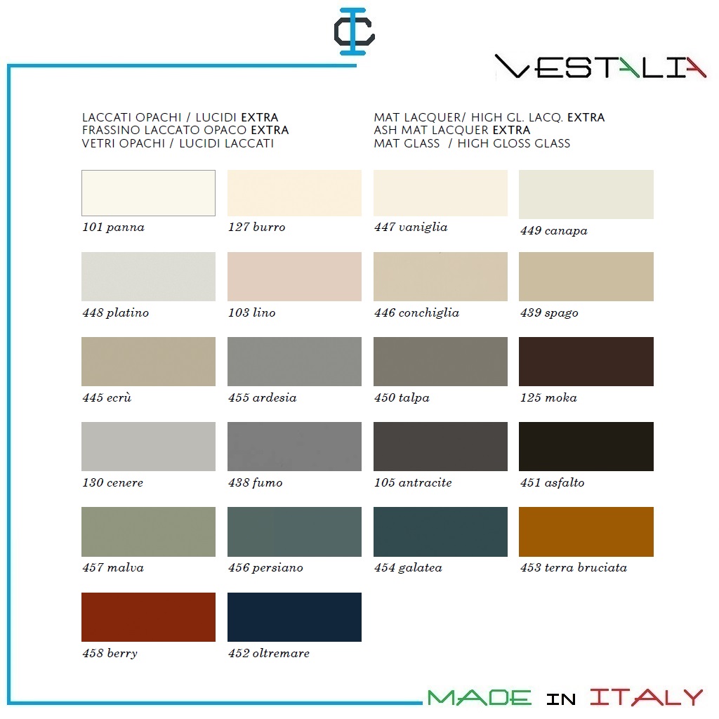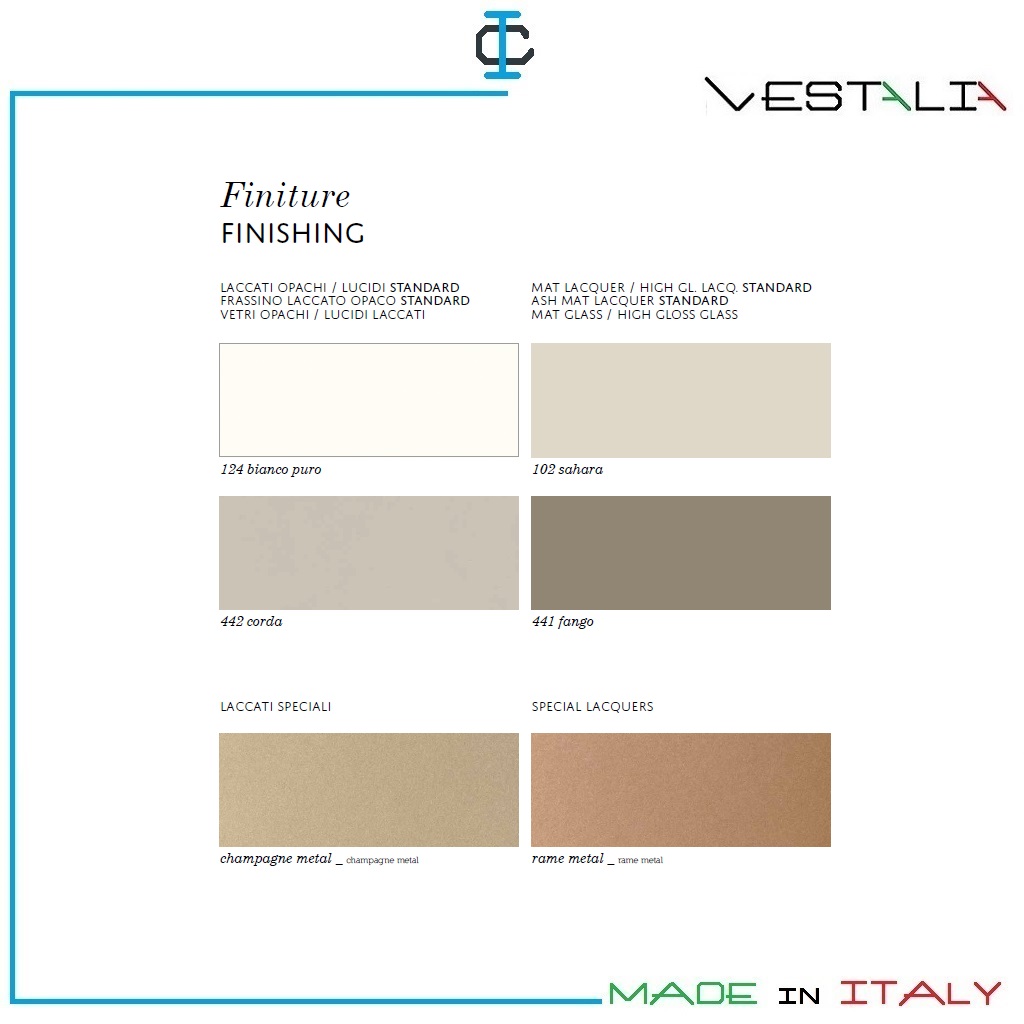 Armadio Linee laccato. Armadio ante battenti composto da : 3 armadi L.96 cm., 1 armadio vetro L.96 cm., 1 armadio L.48 cm. Attrezzatura : 2 tubi appendiabito ed 1 ripiano per ogni vano. Armadio con struttura in legno tamburato di Abete sp. 26 mm. ed altezza cm. 258. Ante in finitura laccato opaco a scelta. Design Contemporaneo. Misure (cm): L.482,5 P.62 H.258