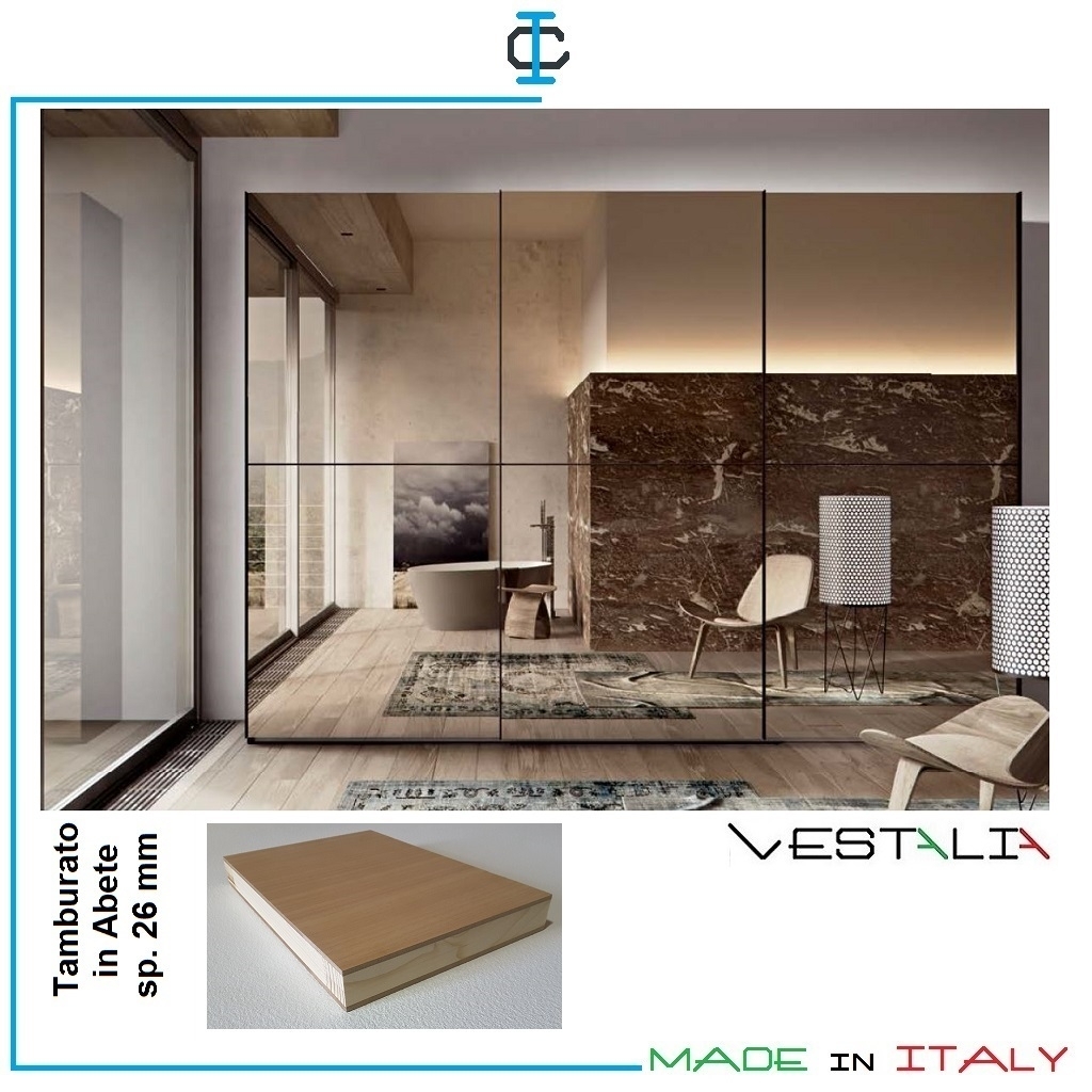 VESTALIA progetta e produce armadi scorrevoli con possibilità di realizzazione su misura e con finiture e tinte a scelta.