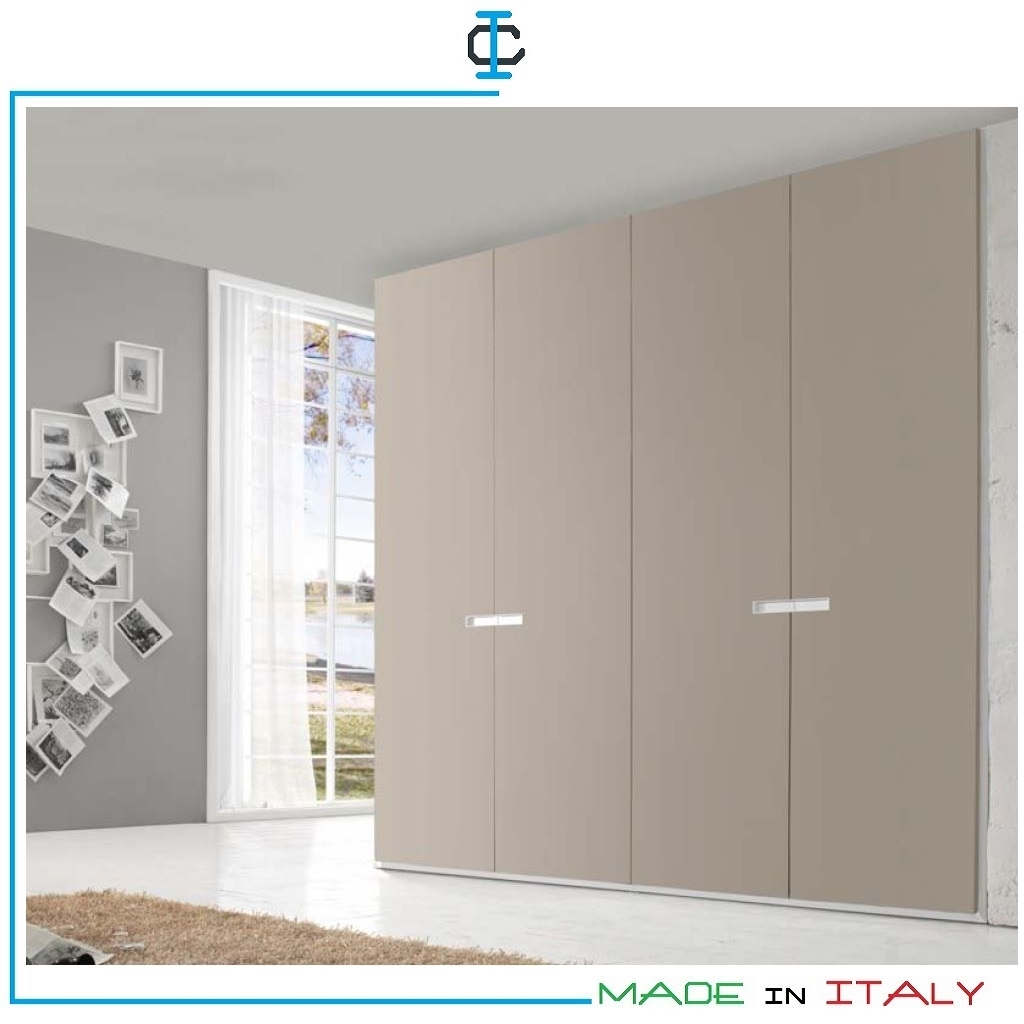 Armadio con maniglia ad incasso H.226 per camera da letto. Armadio componibile e personalizzabile. Armadio lineare composto da : 2 moduli ad ante battenti con tubi appendiabito e ripiani. Finitura Laminato con tinte a scelta. Armadio lineare in stile contemporaneo. Struttura in pannello ecologico in classe E1 a basso contenuto di formaldeide.