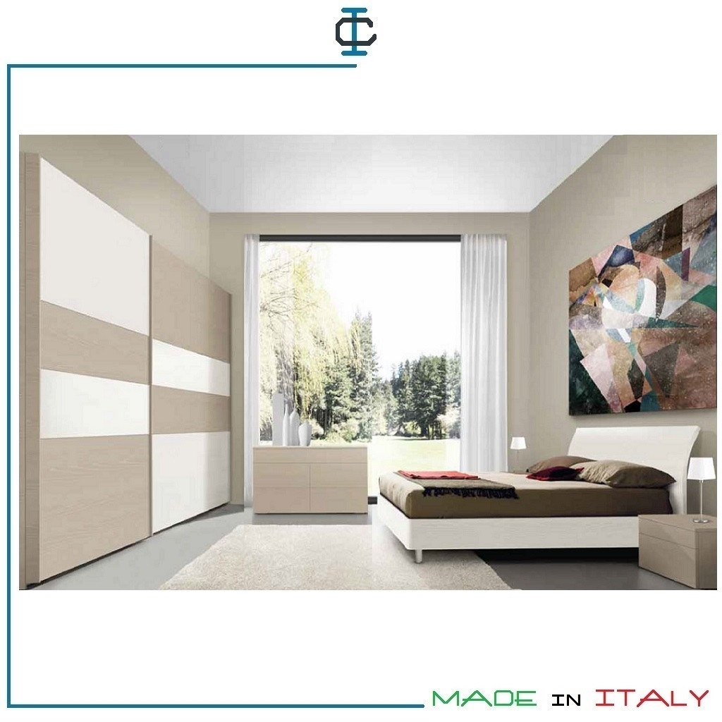 Armadio scorrevole bicolore dal design moderno . Composto da 2 ante scorrevoli inclusi di attrezzatura interna : 2 ripiani e 4 tubi. Struttura in pannello ecologico 18 mm con finitura in laminato. Tinta a scelta.