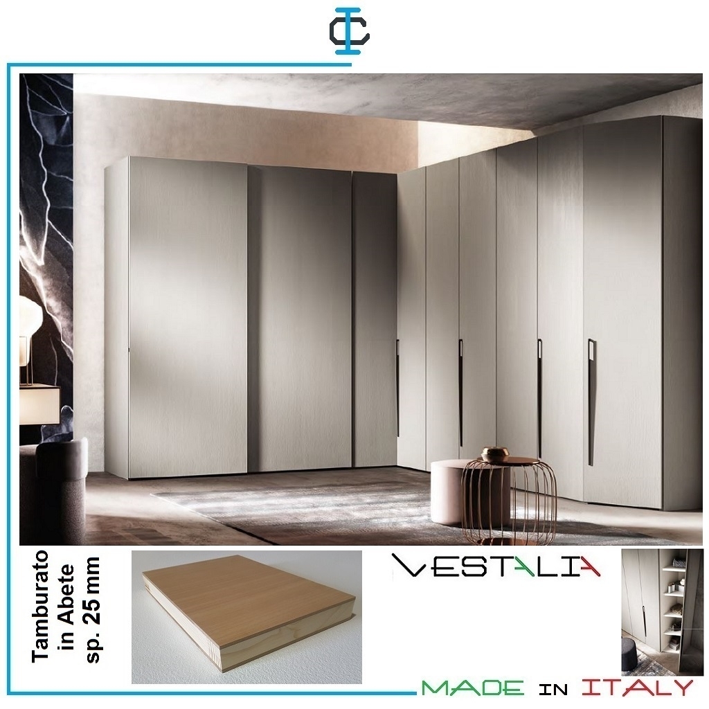 VESTALIA progetta e produce armadi in legno tamburato, componibili e su misura.