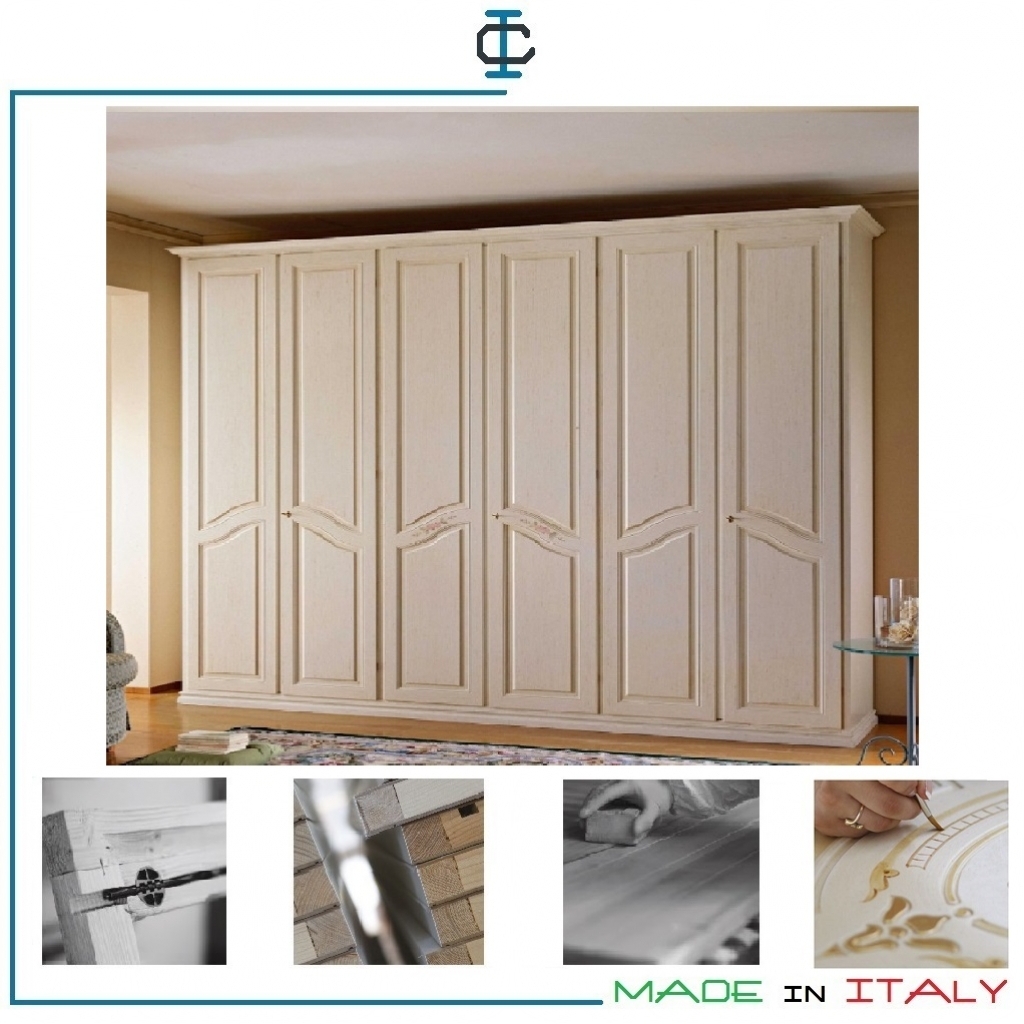 Armadio in stile classico Pagliettato con sei ante battente realizzati da esperti artigiani in Italia. Struttura in tamburato di abete con fianchi esterni sp. 3 cm. Ante in tamburato di abete Finitura Pagliettato Attrezzatura di serie per ogni vano : 2 tubi + 1 ripiano.