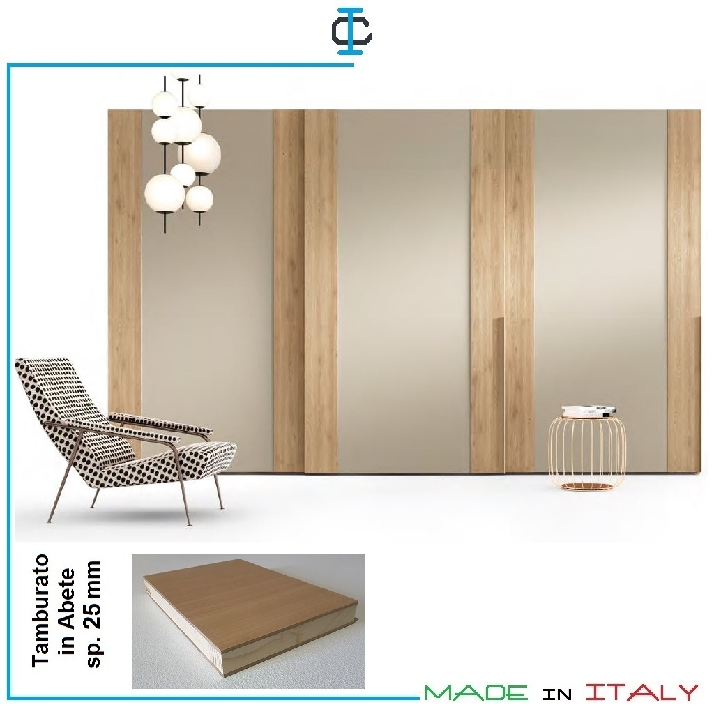 Armadi in tamburato con ante battenti e scorrevoli, componibili e su misura,con finiture e tinte a scelta.