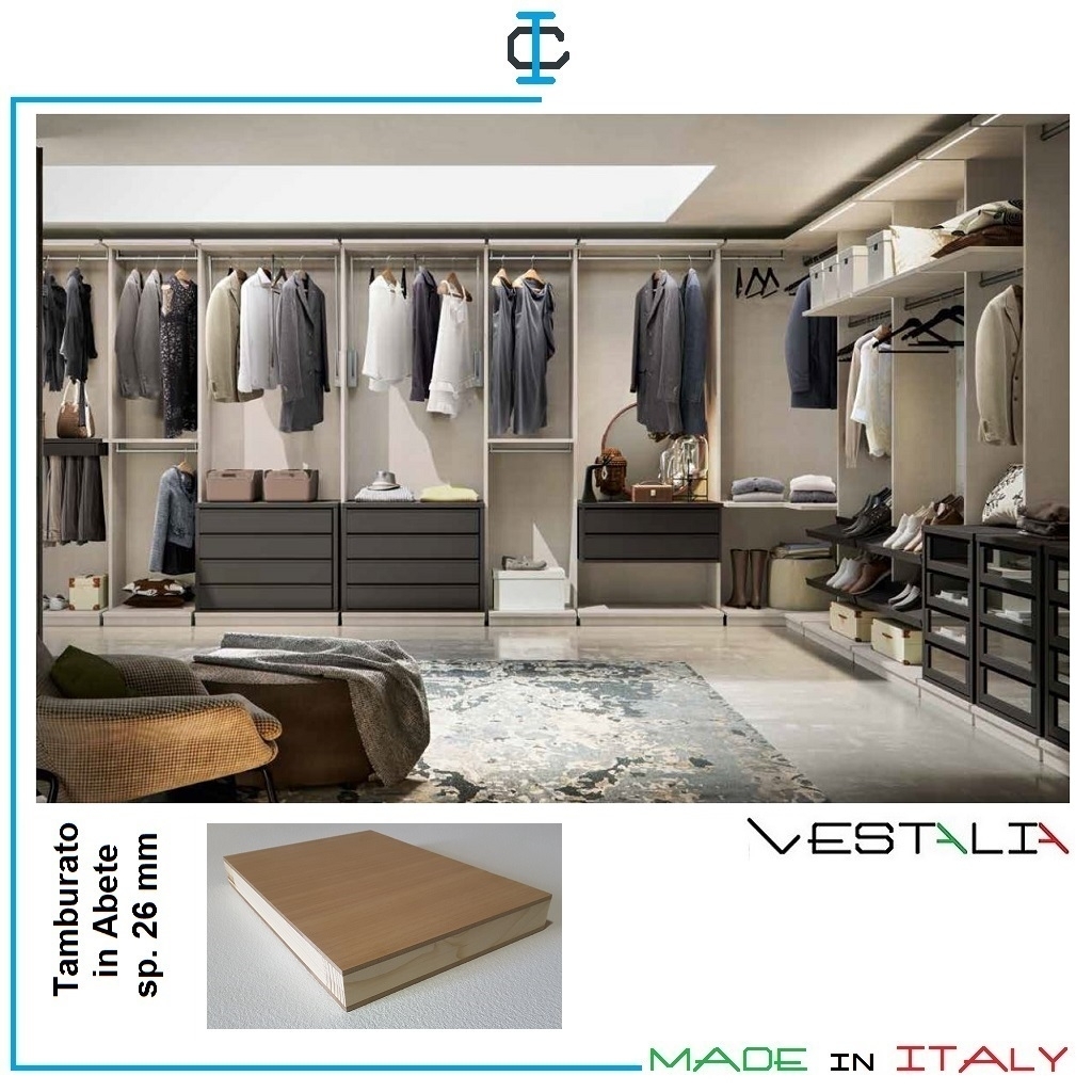 VESTALIA progetta e produce cabine armadio componibili e su misura, in vari materiali a scelta del cliente.