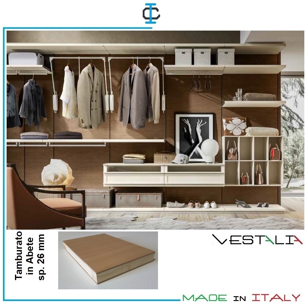 VESTALIA progetta e produce Cabine Armadio in tamburato personalizzabili in materiali, misure e colori.