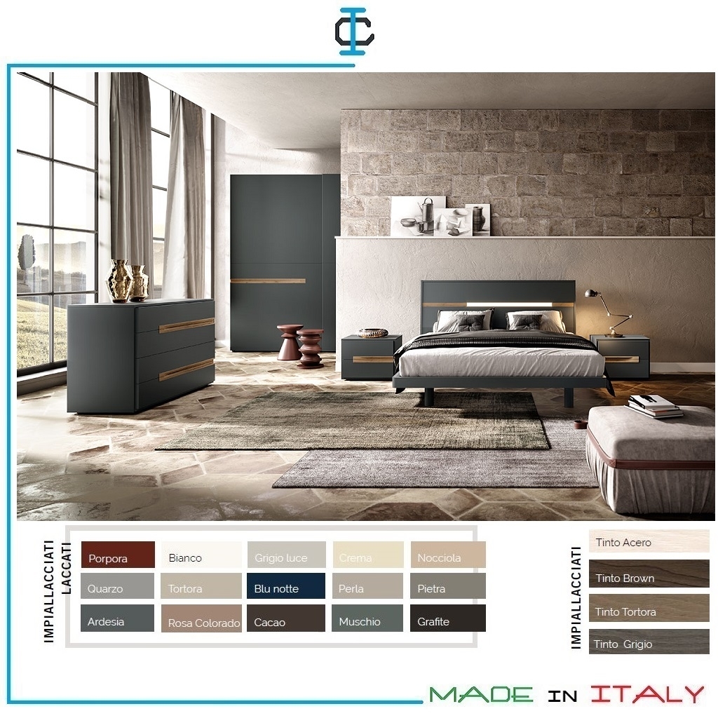 Camere matrimoniali laccate componibili, personalizzabili in varie finiture e tinte a scelta del cliente.