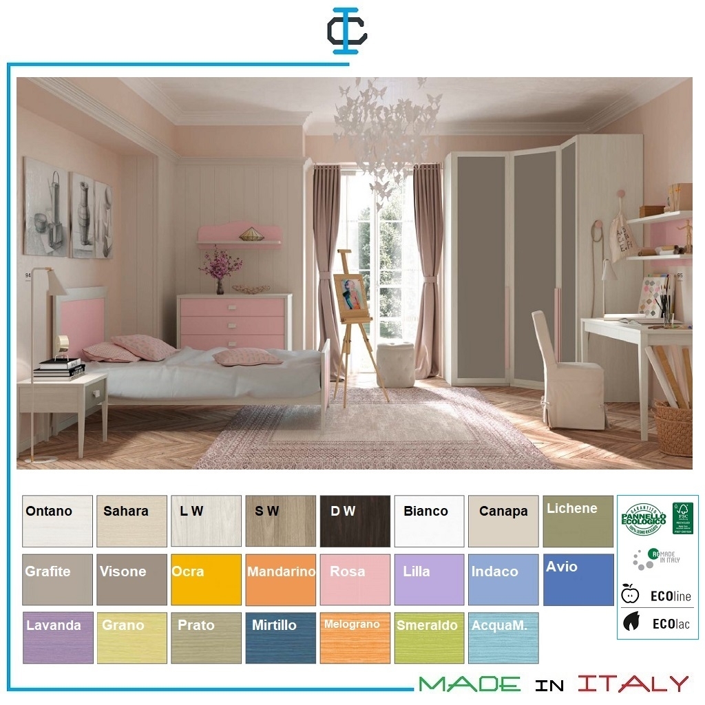 Camerette linea ECO, componibili e personalizzabili con tinte a scelta.