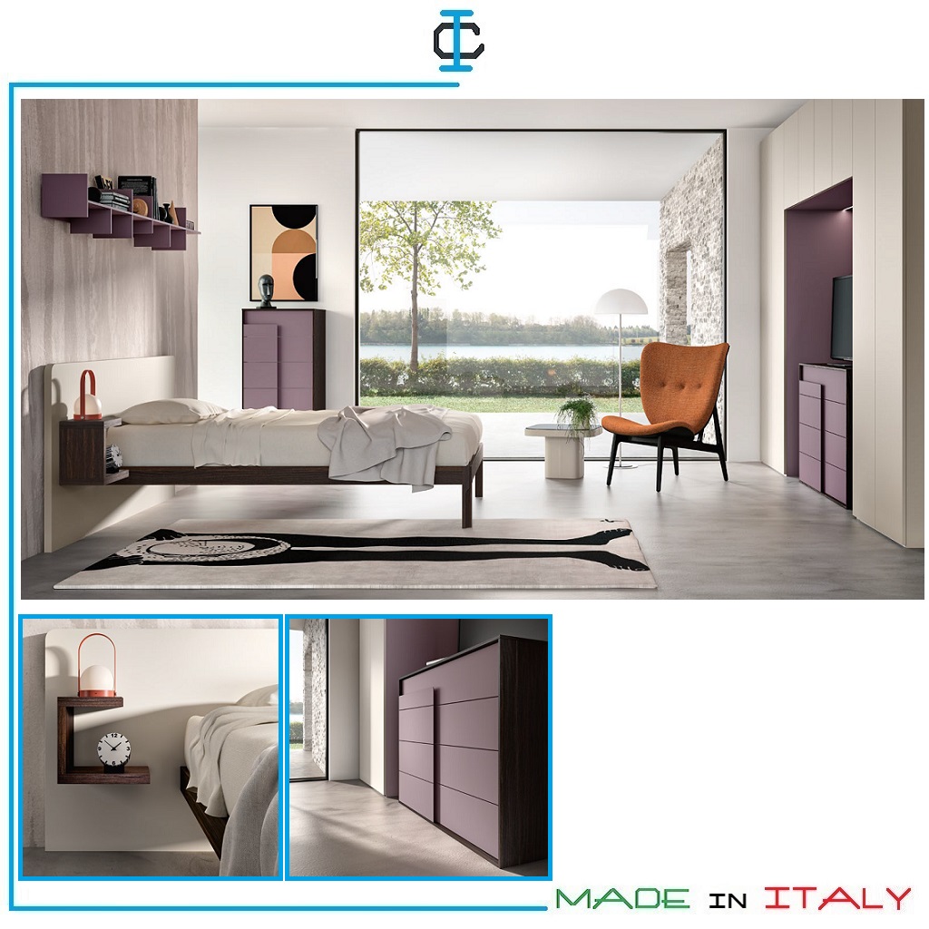 Cameretta Ponte con Settimino. Cameretta con struttura in Pannello Ecologico in classe E1 in finitura con tinte a scelta. Cameretta composta da : Armadio ponte, comò, settimino, letto, libreria, ripiano. Stile Contemporaneo. Misure (cm): Armadio Ponte L.360 P.60 H.258 Parete Letto L.183 Settimino L.56