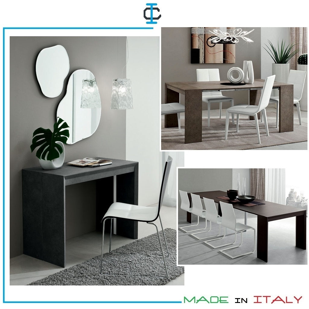 Consolle con prolunghe e piano in HPL con finiture a scelta. Stile moderno, composto da: Struttura rivestita in Laminato HPL postformato, guide in alluminio, piano in HPL. Materiali e produzione Made in Italy.