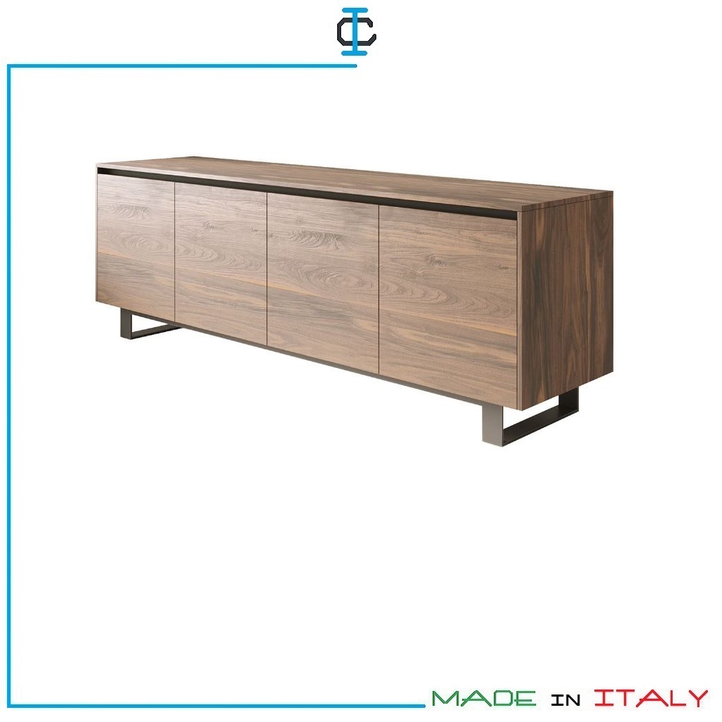 Credenza in Legno e Metallo. Credenza 4 ante in legno Rovere nodato con tinte a scelta, base in metallo. Credenza con apertura ante a gola, completa di : 4 ripiani e 4 ante . Credenze made in Italy in stile Contemporaneo. Misure: L.240 H.78 P.60