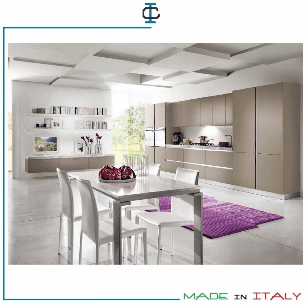 Cucine su Misura Moderne. Cucine su misura made in Italy. Cucine su misura lineari con maniglia a gola. Cucine composte da : Colonne forno, zona cottura, zona lavello, pensili ad anta battente, colonna frigo, colonna dispensa. Finitura in laminato con tinte a scelta. Materiali strutturali a scelta e colori configurabili. Design Contemporaneo.