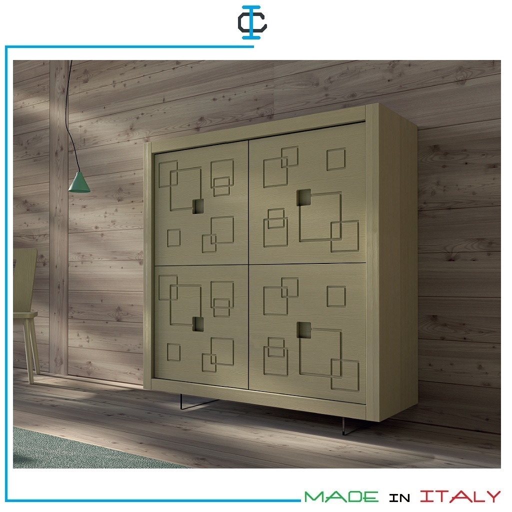 Dispensa in Massello con piedi in plexiglass. Finitura Verde Oliva. Dispensa per zone giorno, cucine ed ambienti da valorizzare. Dispensa composta da 2 vani con 4 ante. Struttura ed ante in Abete massello 3 strati.