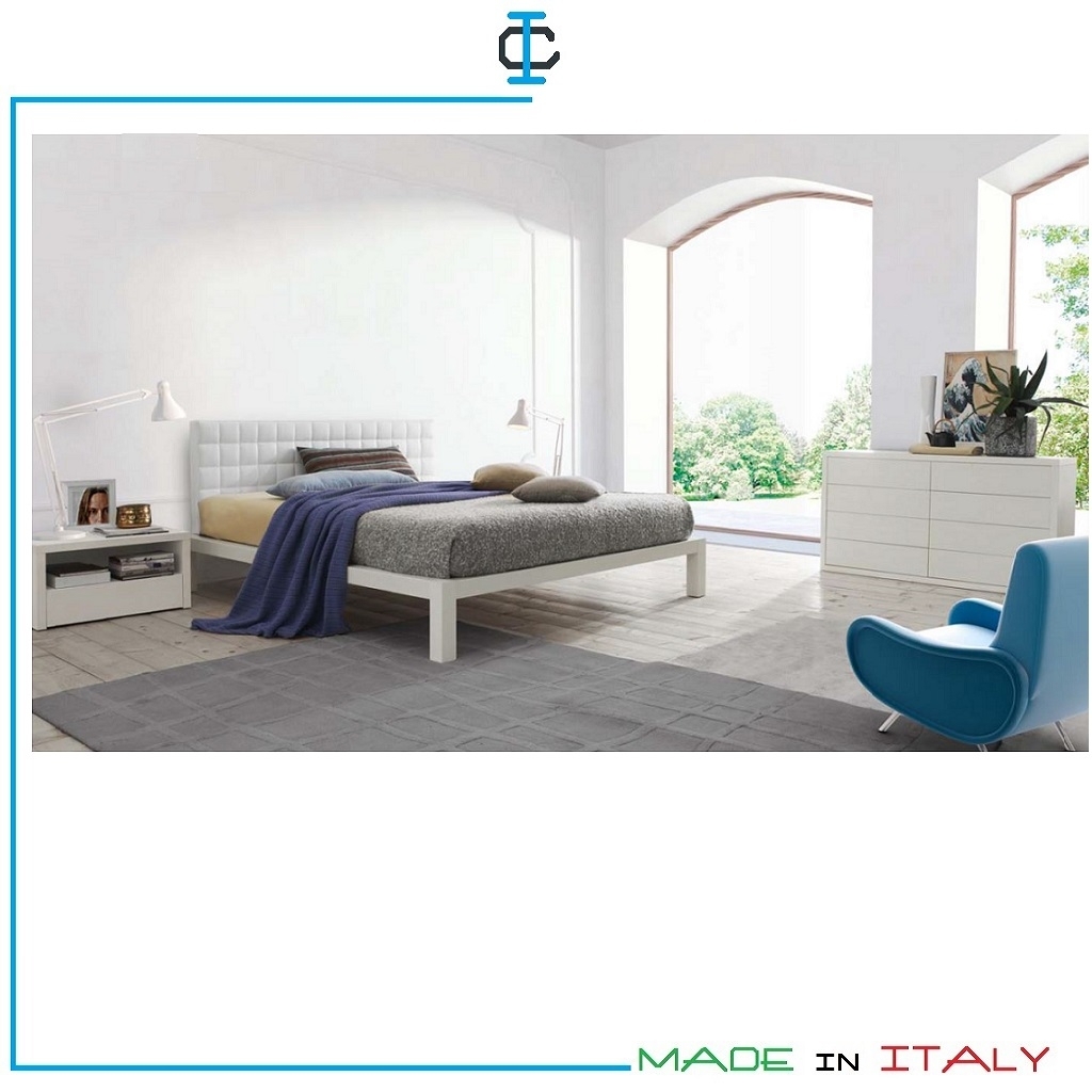 Gruppo notte in bianco con comò e comodini in laminato per camere da letto matrimoniali. Gruppo notte composto da : 1 comò e 2 comodini in stile moderno. Finitura in laminato bianco, e con tinte a scelta. Struttura in pannello ecologico in classe E1. Comò e comodini realizzati in Italia da falegnami qualificati. Misure (cm):