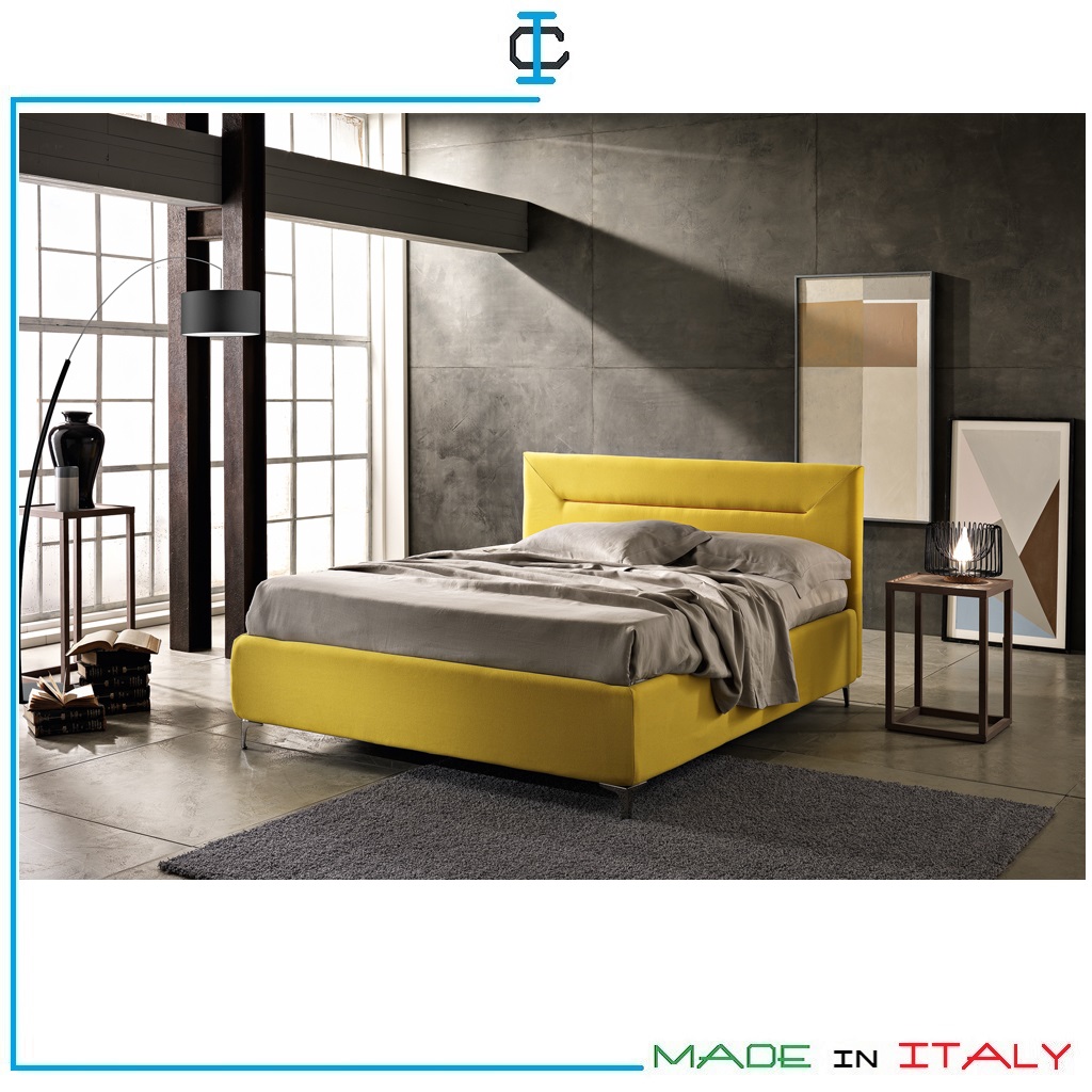 Letto matrimoniale contenitore. Letto imbottito completo di : testiera, contenitore con rete a doghe, piedi. Letti made in Italy con tessuti a scelta. Stile Contemporaneo. Misure (cm): L.172 P.211 H.99