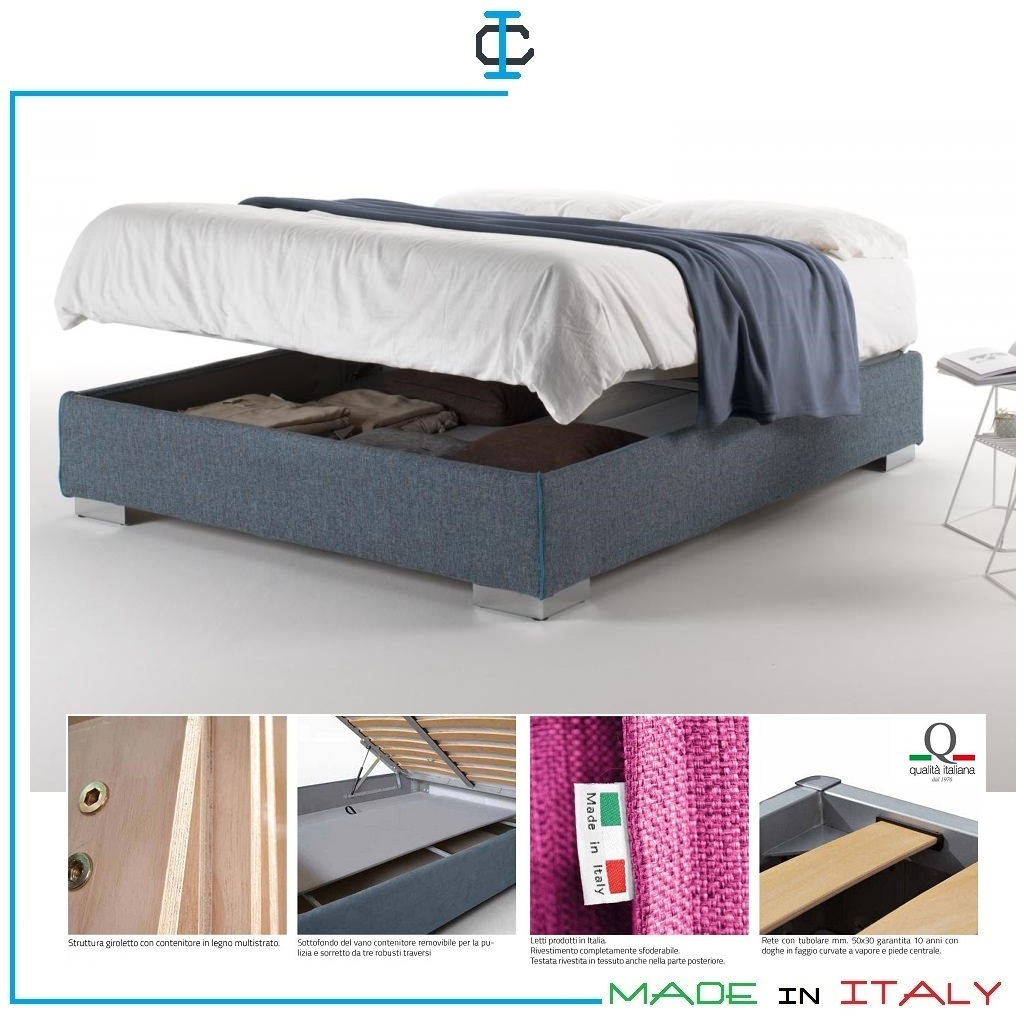 Letto imbottito mod. Sommier con contenitore normale in versione singolo. Letto moderno, composto da contenitore imbottito. Imbottitura con tessuto a scelta. Rete a doghe inclusa. Materasso opzionale.