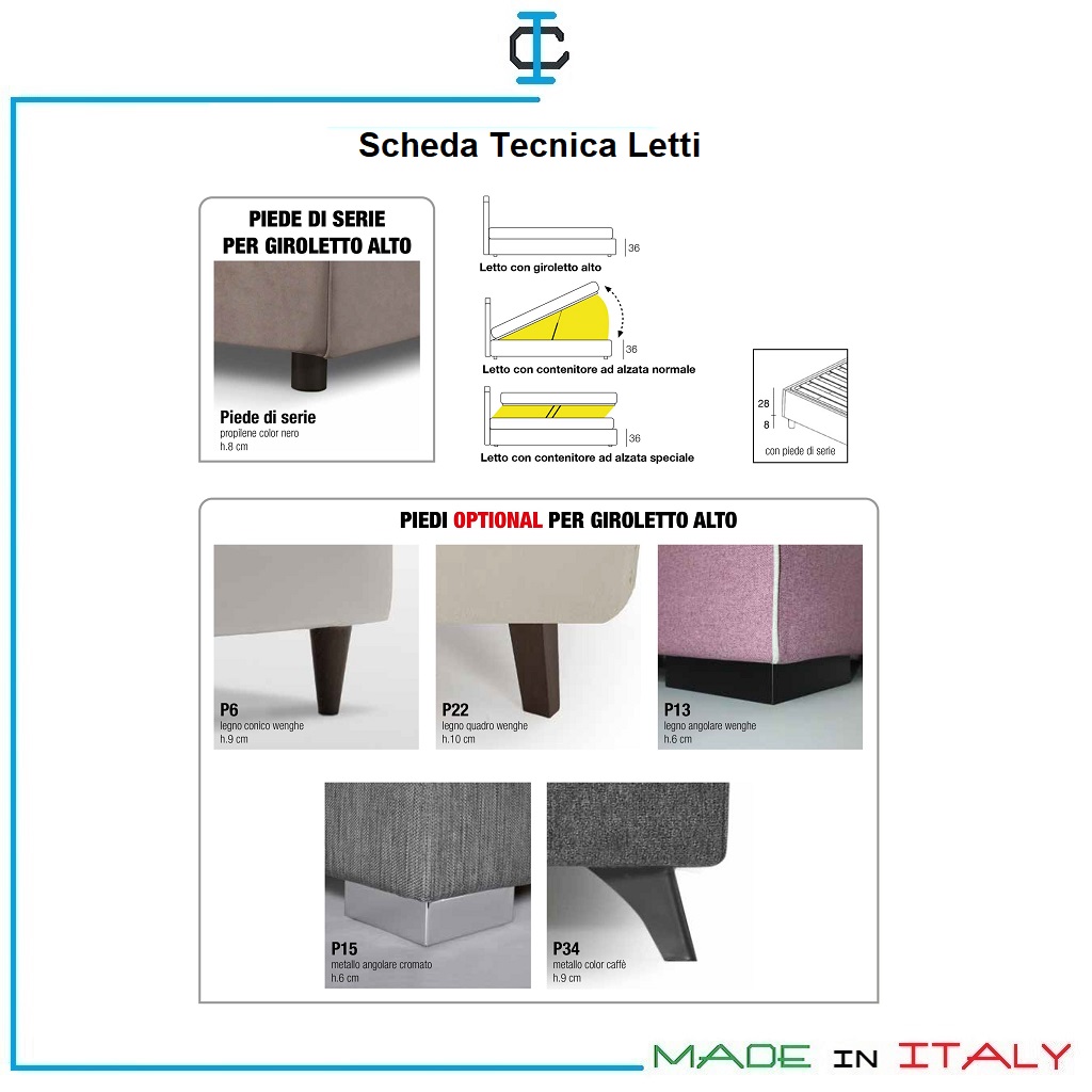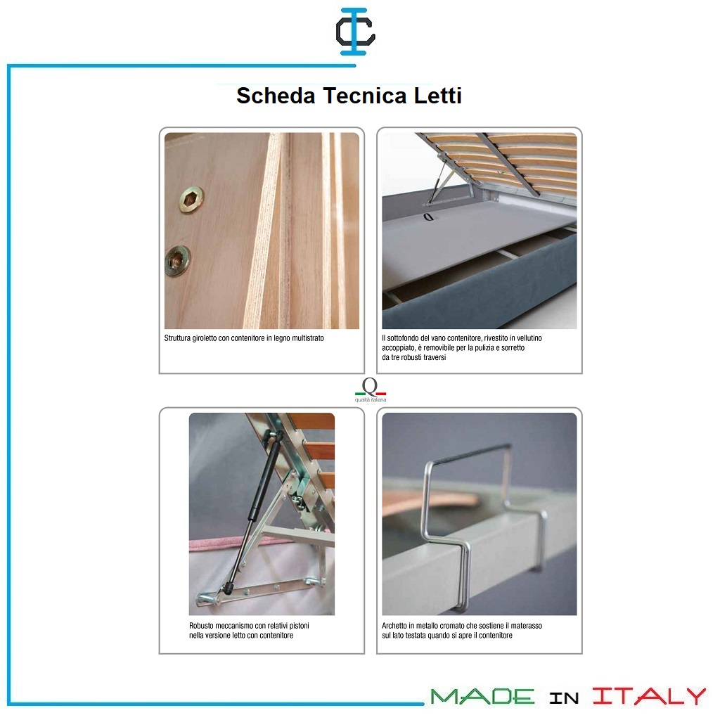 Disponibile anche in versione : - L.131 (letto 1 piazza e 1/2) - L.96 (letto singolo)