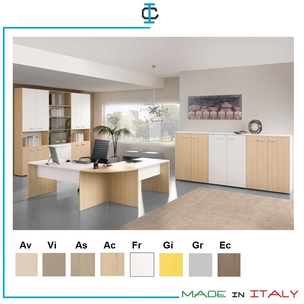 Libreria per Studi in stile moderno, realizzata in pannello ecologico certificato. Libreria composta da : elementi ad anta battente, vani a giorno, 2 ante vetro. Libreria componibile con finiture a scelta. Librerie per uffici, studi, ecc... Design moderno