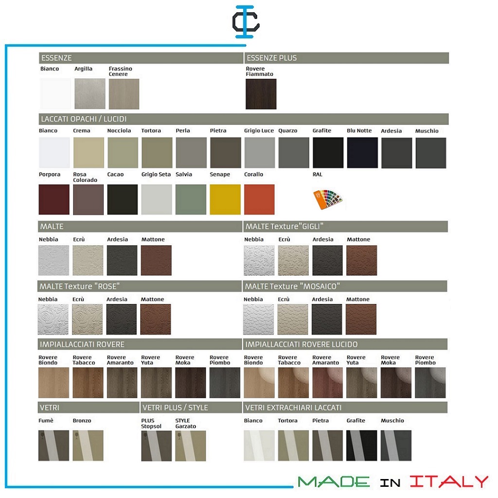 Madie personalizzabili in materiali, misure e colori.