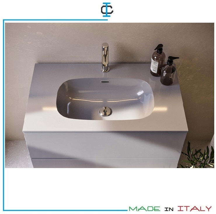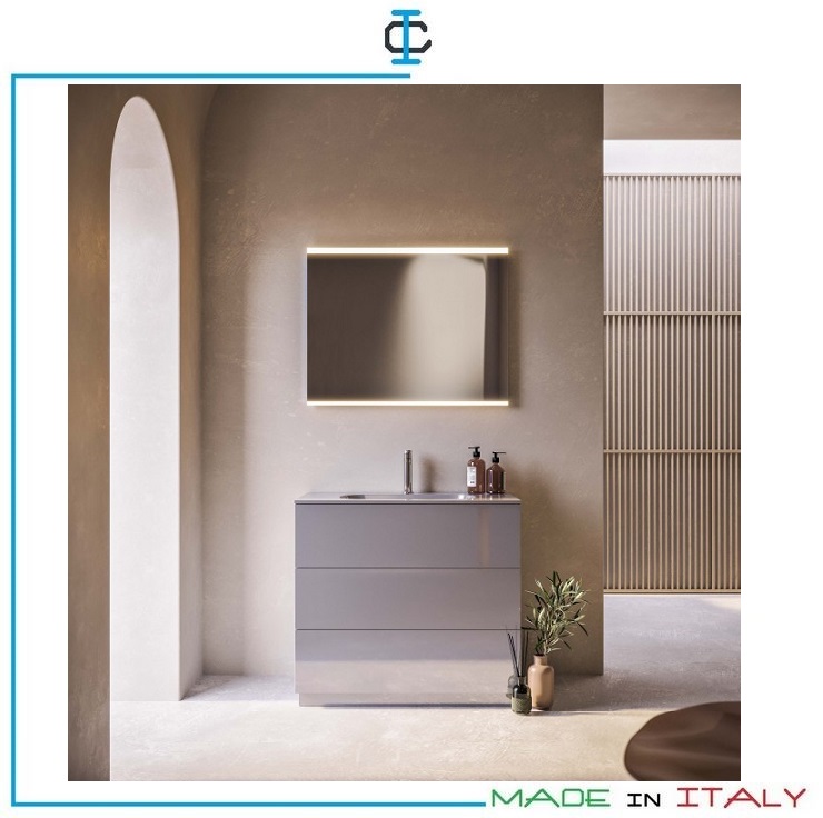 Mobile Bagno a terra. Mobile bagno sospeso completo di : base 3 cassetti, consolle in mineral, specchio, led. Struttura in pannello idrofugo in classe E1. Design Contemporaneo.