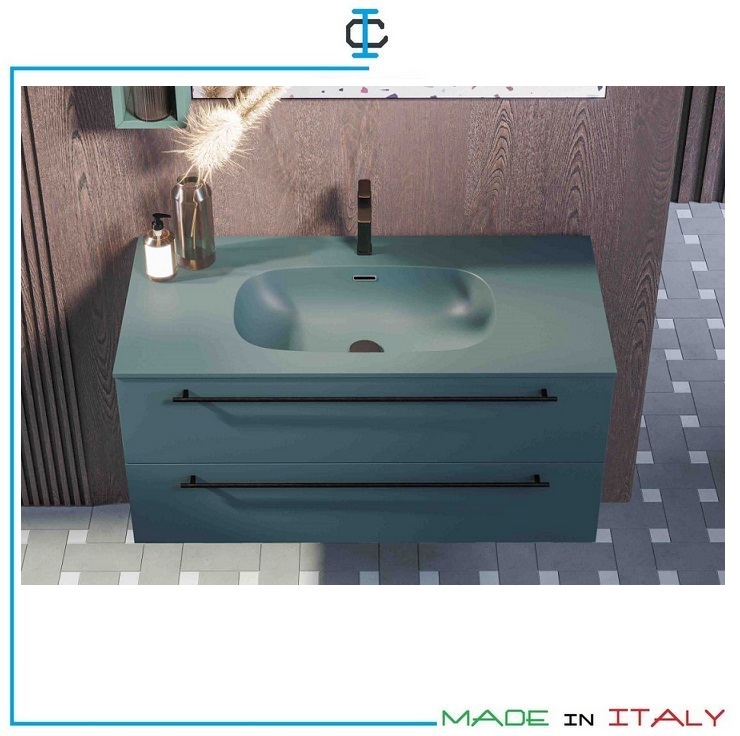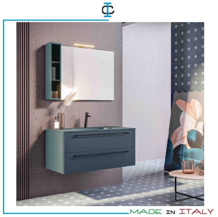 Mobile Bagno laccato opaco. Mobile bagno sospeso completo di : base 2 cassetti, consolle in mineral, specchio, led. Struttura in pannello idrofugo in classe E1. Design Contemporaneo.