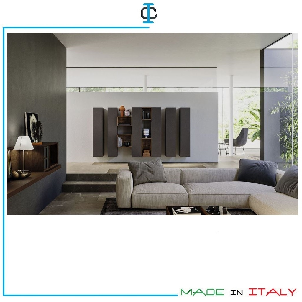 Pareti soggiorno sospese con possibilità di realizzazione su misura e con finiture e tinte a scelta.