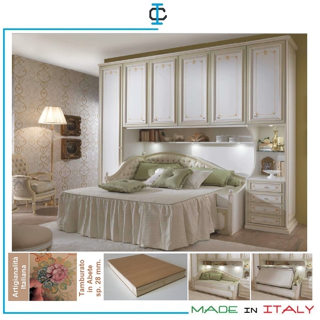 Escluso : Materassi ( superiore 80x170 H.14, interno 160x190 H.14), cuscini, copriletti, poltrona, pouf, illuminazione, accessori.