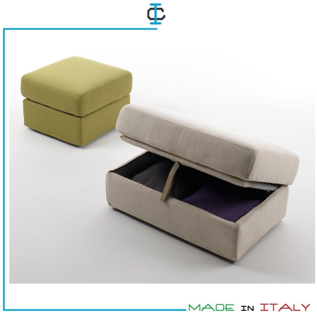 Pouff contenitore da abbinare a divani e poltrone, da inserire in salotti , zone giorno, camere da letto e disimpegni. Pouff contenitore in stile moderno. Pouff contenitore imbottito rivestito in tessuto , completamente sfoderabile. Pouff contenitore prodotti in Italia da artigiani qualificati.