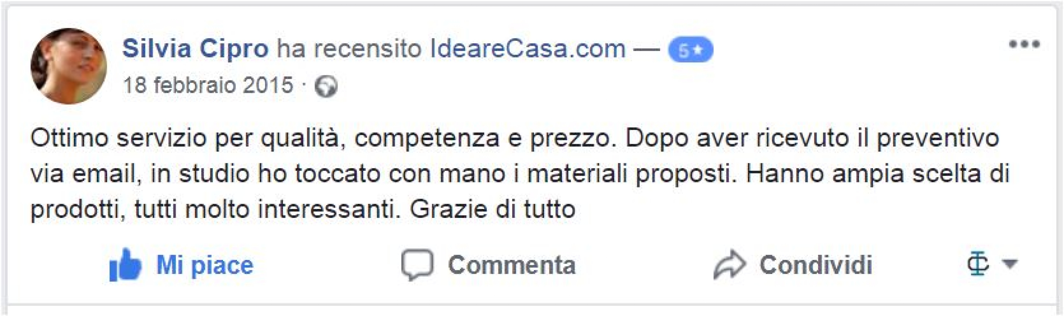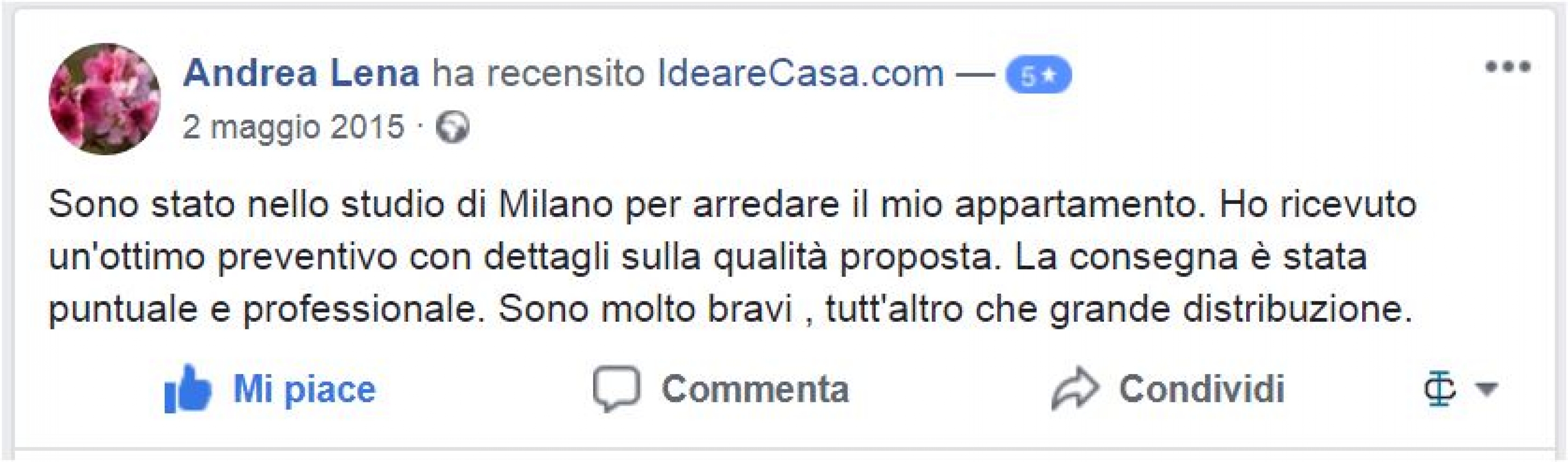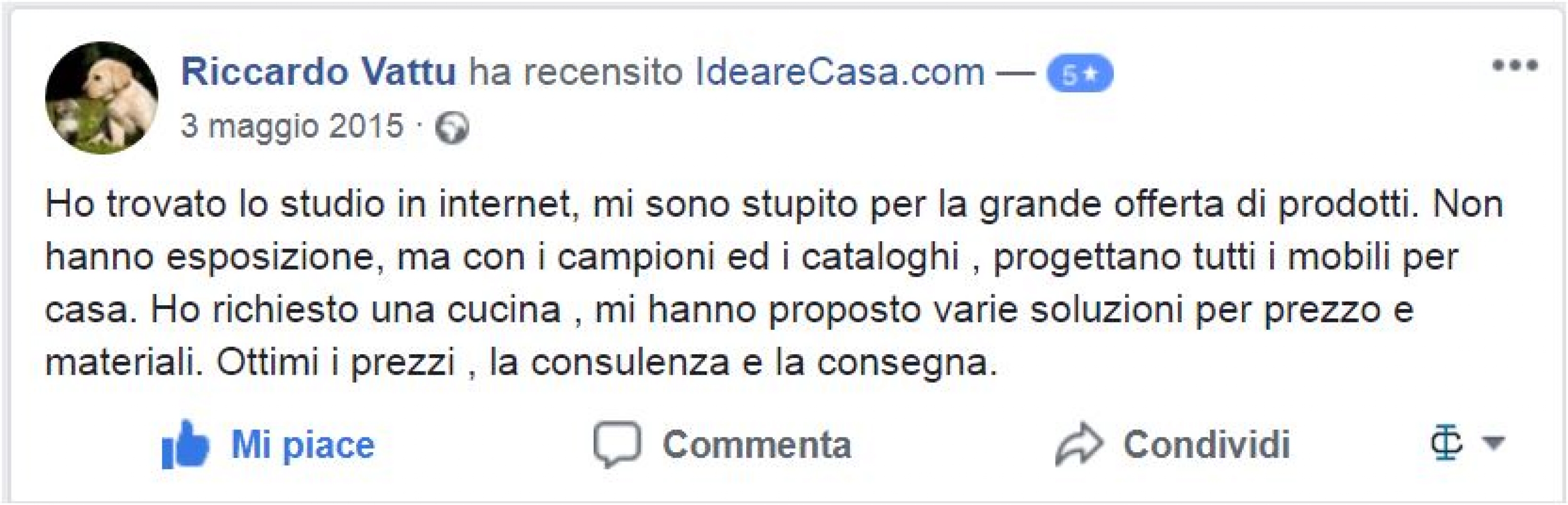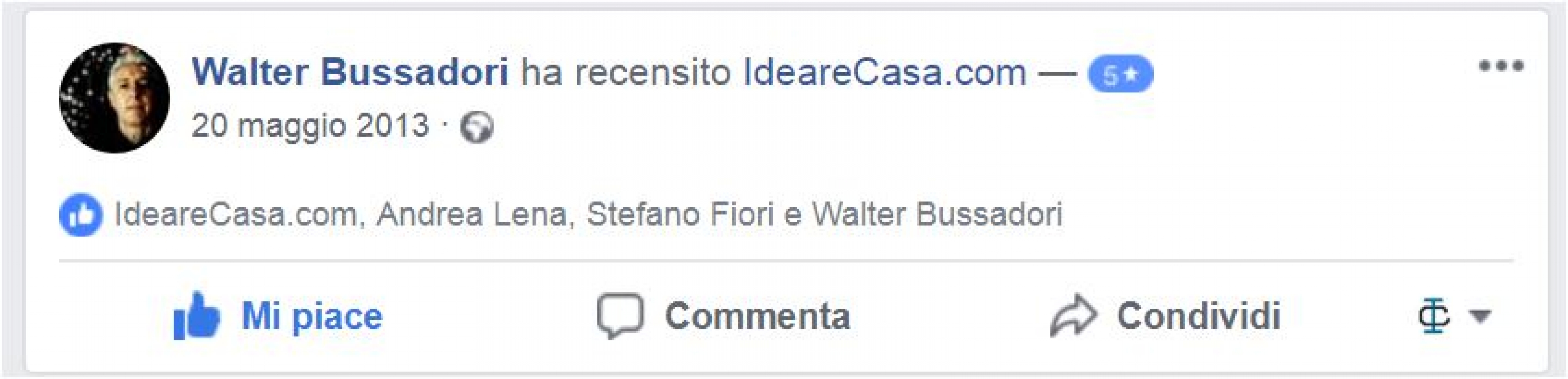 Il Sig. Bussadori ha recensito con 5 stelle IdeareCasa.
