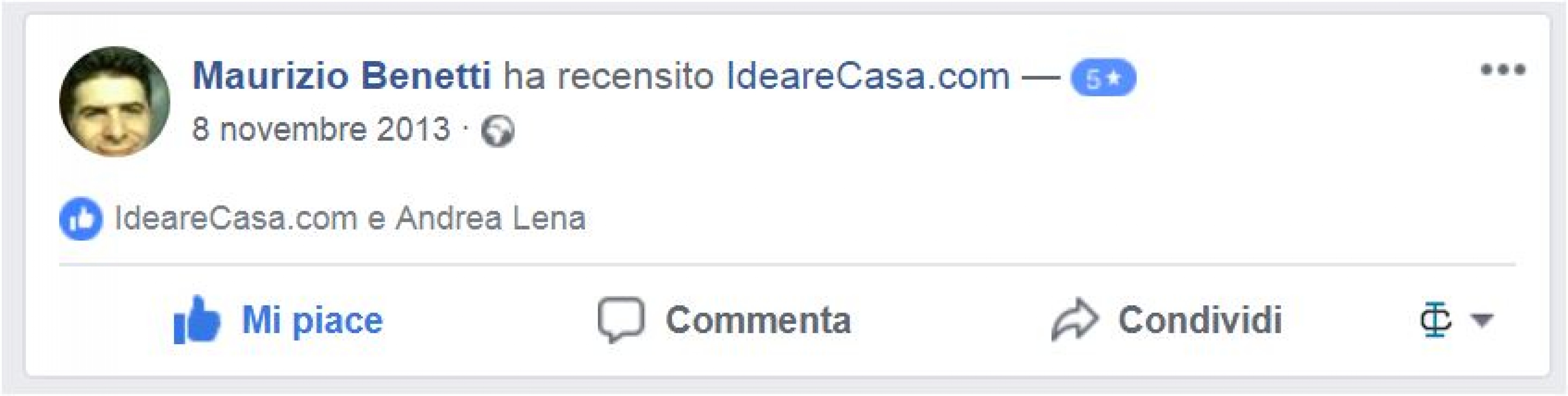 Il Sig. Benetti ha recensito con 5 stelle IdeareCasa.