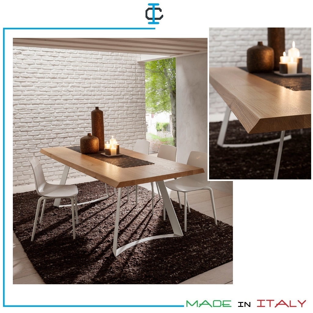 Tavoli da pranzo in finitura Rovere Scortecciato Naturale con piano in HPL sp.50 mm, stile moderno, composto da: Gambe in metallo verniciato a polveri epossidiche, piano 50 mm. rivestito in HPL. Materiali e produzione Made in Italy.