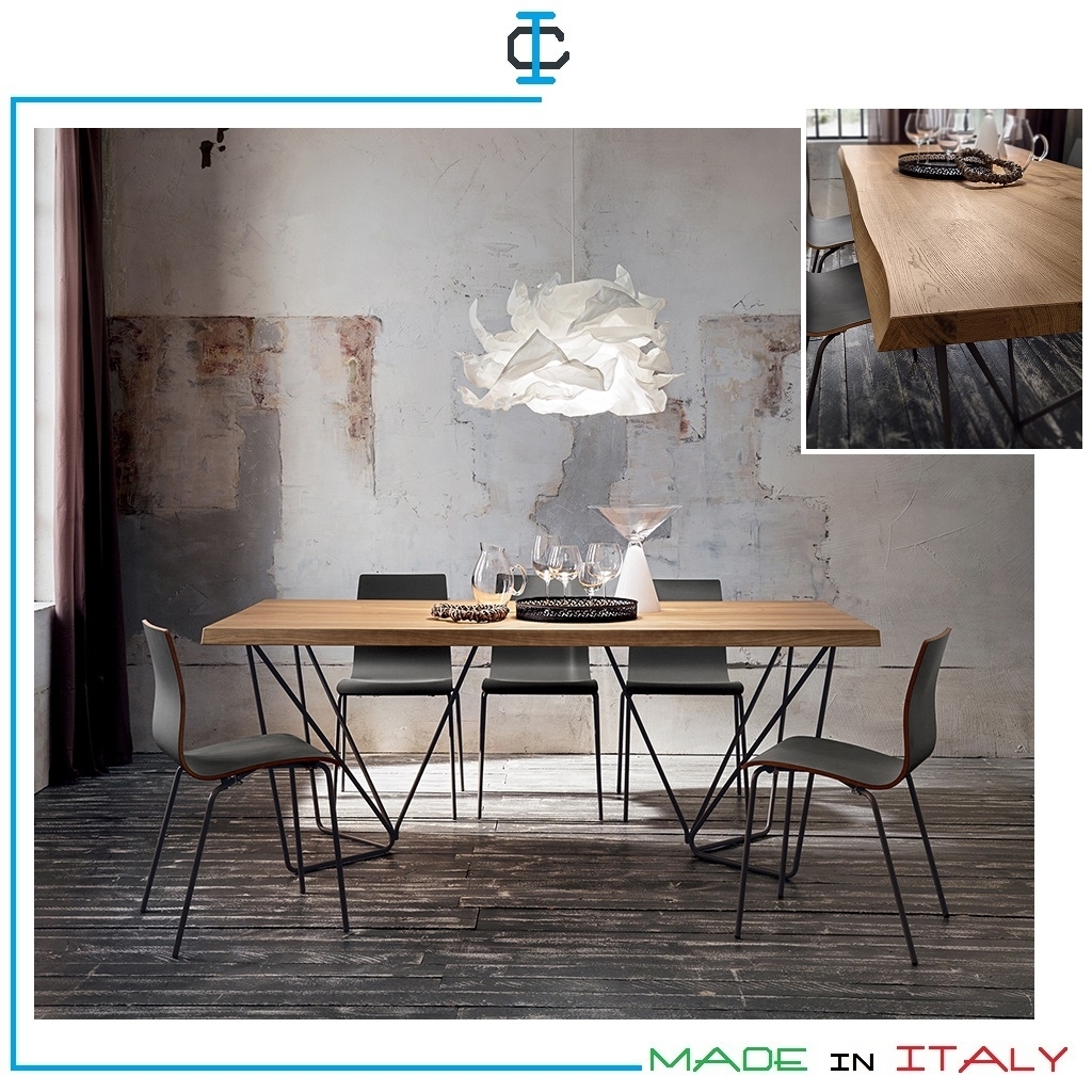 Tavolo di Design in finitura Scortecciato Naturale con piano in tamburato sp.50 mm , stile moderno, composto da: Basamento in metallo verniciato a polveri epossidiche, piano 50 mm.impiallacciato in Rovere Massiccio. Materiali e produzione Made in Italy.
