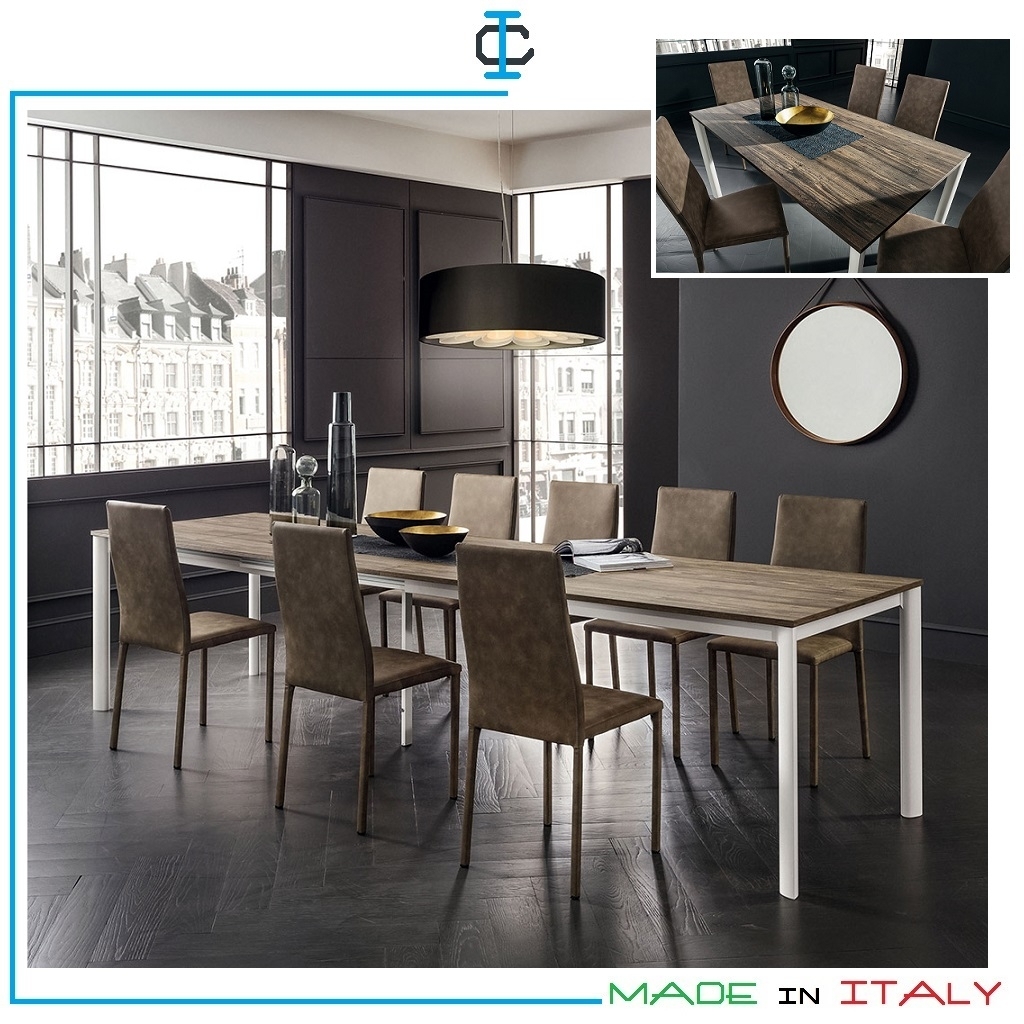 Tavolo Rettangolare Allungabile con piano in HPL, stile moderno, composto da: Gambe in alluminio laccato a polvere epossidica, piano 20 mm. rivestito in HPL. Materiali e produzione Made in Italy.