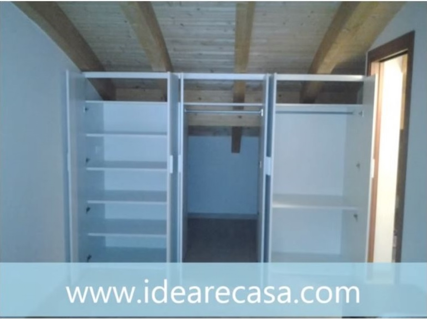 Armadio per Mansarda con passaggio per retroarmadio. Armadio Mansardato su misura, progettato e realizzato secondo le richieste e le esigenze del cliente. Armadio lineare con ante battenti composto da : 2 armadi con 2 ante, 1 armadio con 2 ante per il ...