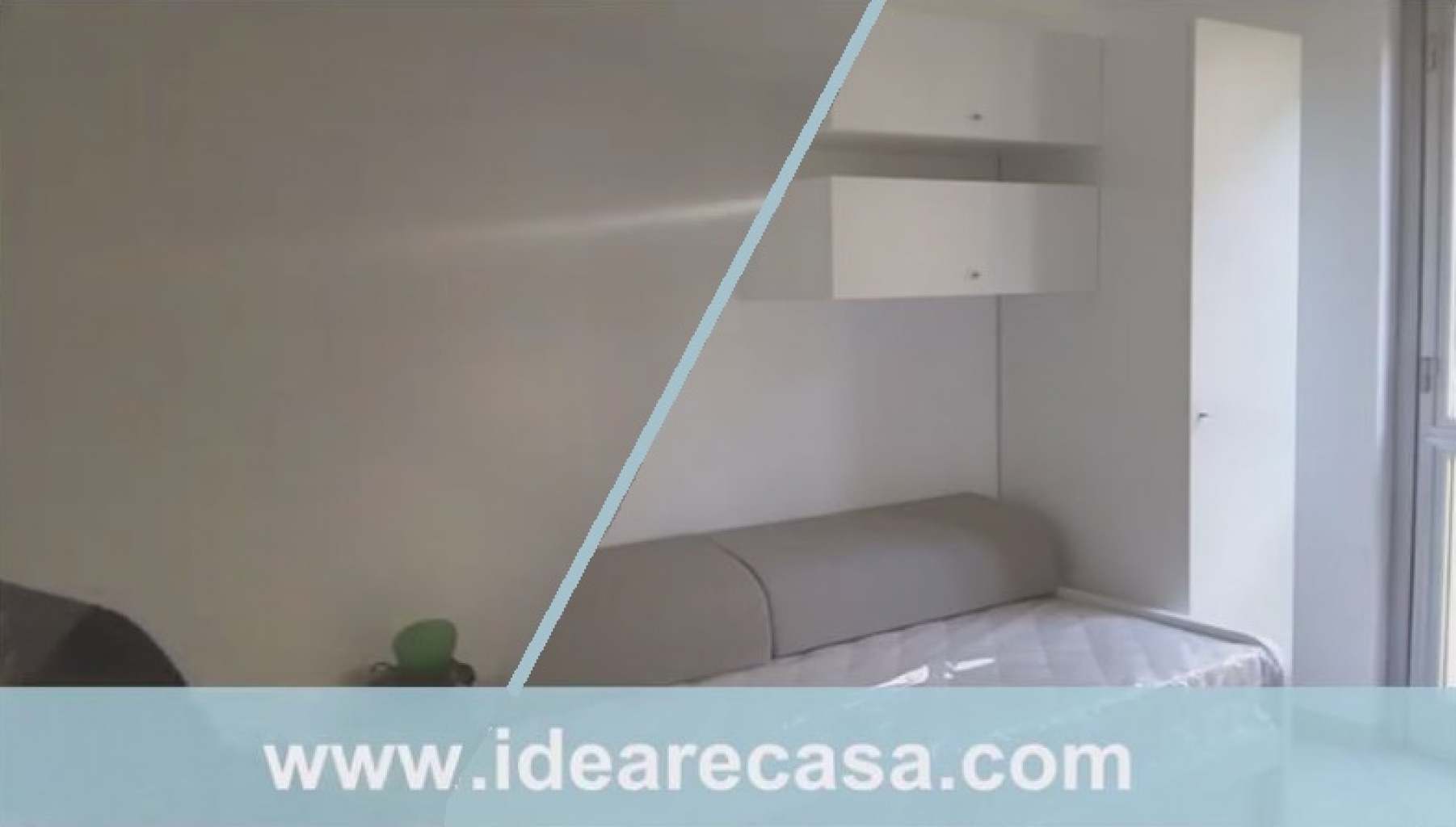 Camerette per bambini e ragazzi. Cameretta a completamente di un ponte già esistente. Cameretta realizzata su richiesta del cliente con : Libreria, armadio, divano con 2 letti, pensili, scrivania e mensole. Finitura in laminato rovere bianco. Cameretta ...