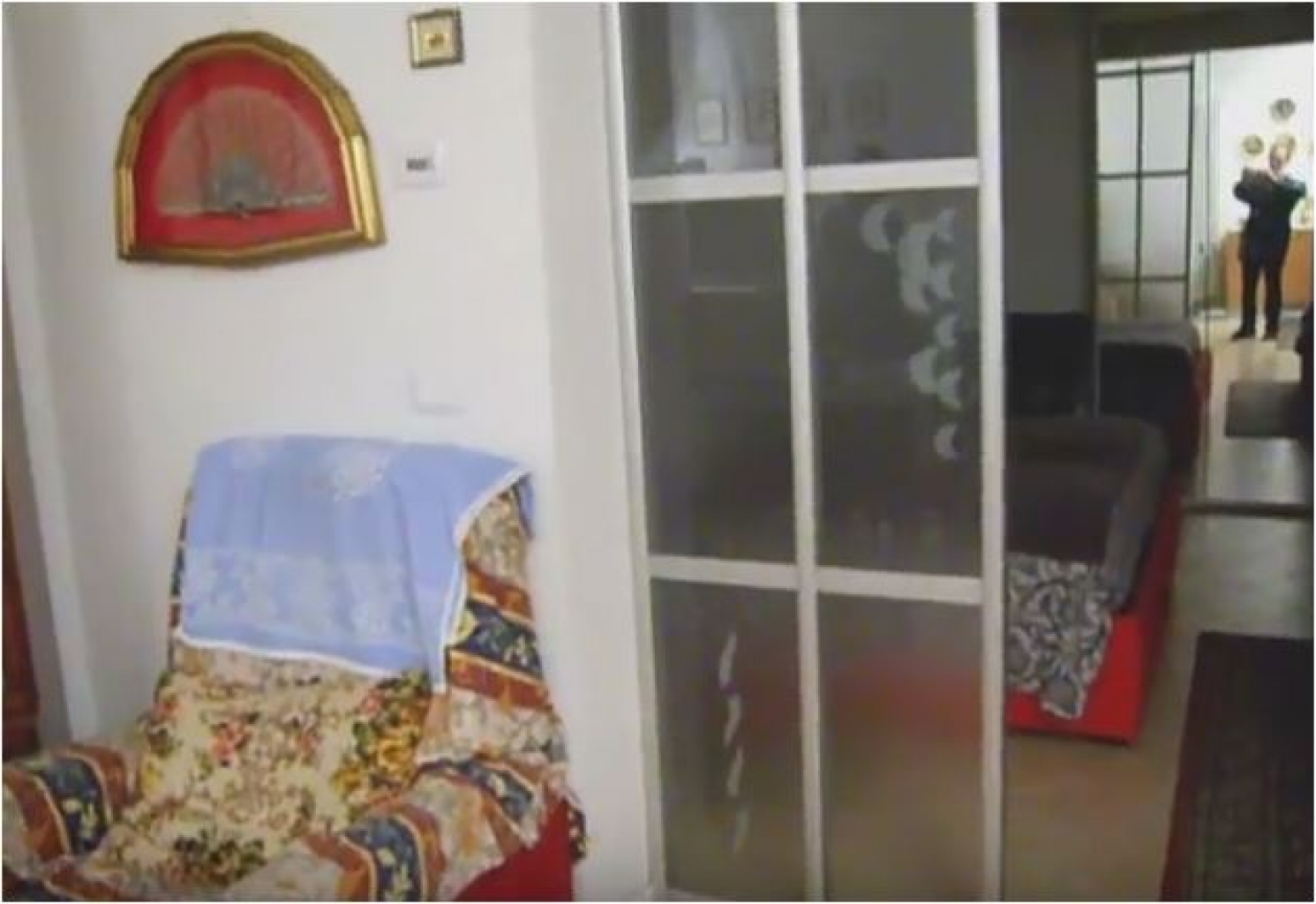 Interparete per separare una cucina da una camera da letto. Interparete progettata per essere montata nel passaggio tra due ambienti, con un sistema a pressione. L'interparete è composta da prifili in alluminio e vetri decorati che permettono ...