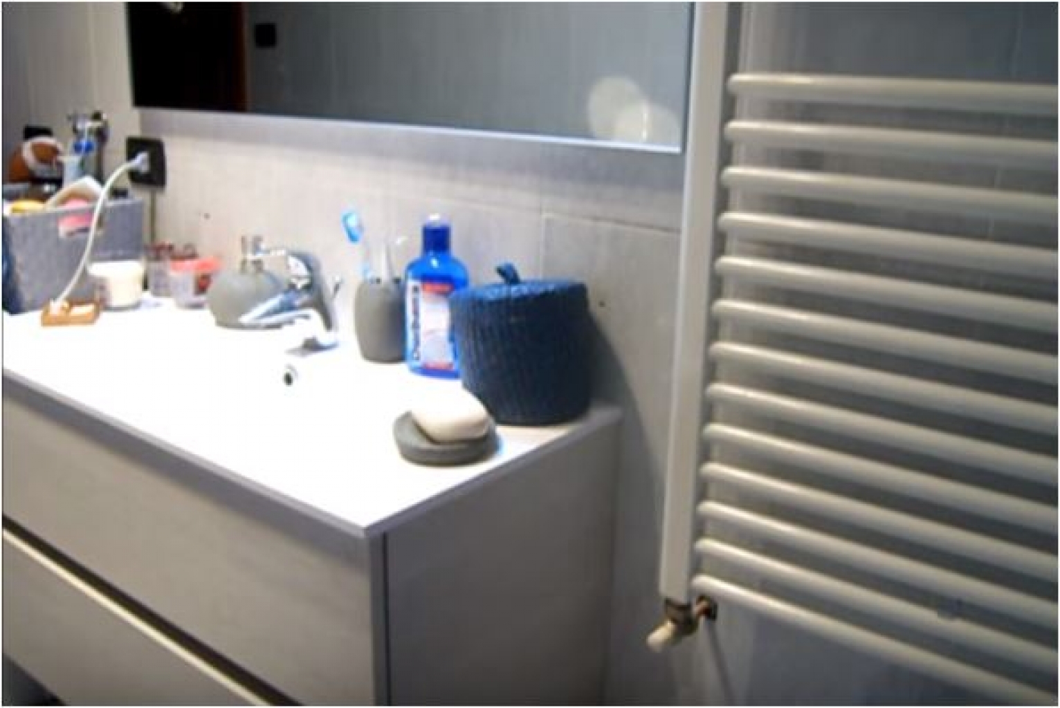 Mobile Bagno sospeso con gola, Arredo bagno realizzato in pannello ecologico irofugo in classe E1, in finitura venato bianco. Il mobile bagno è composto da una base sospesa con 2 cestoni, uno specchio ed un faretto.. Mobili per bagni realizzati ...